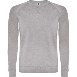 Sudadera de algodón de manga entallada estilo ranglán. Con cuello, puños y cintura, en canalé 1×1. Cuello redondo con adorno de costuras remalladas cruzadas y cubrecosturas de refuerzo en el interior del cuello.