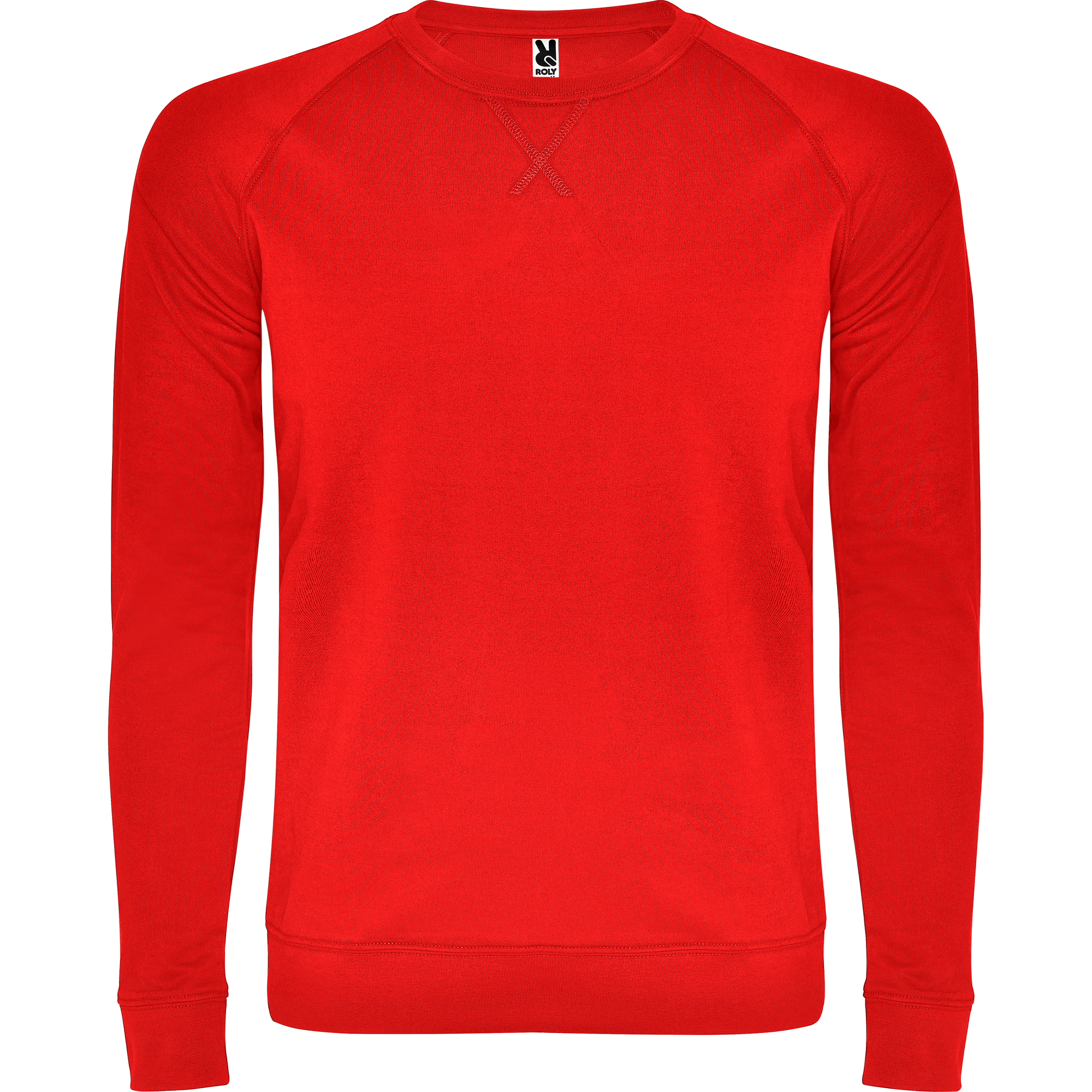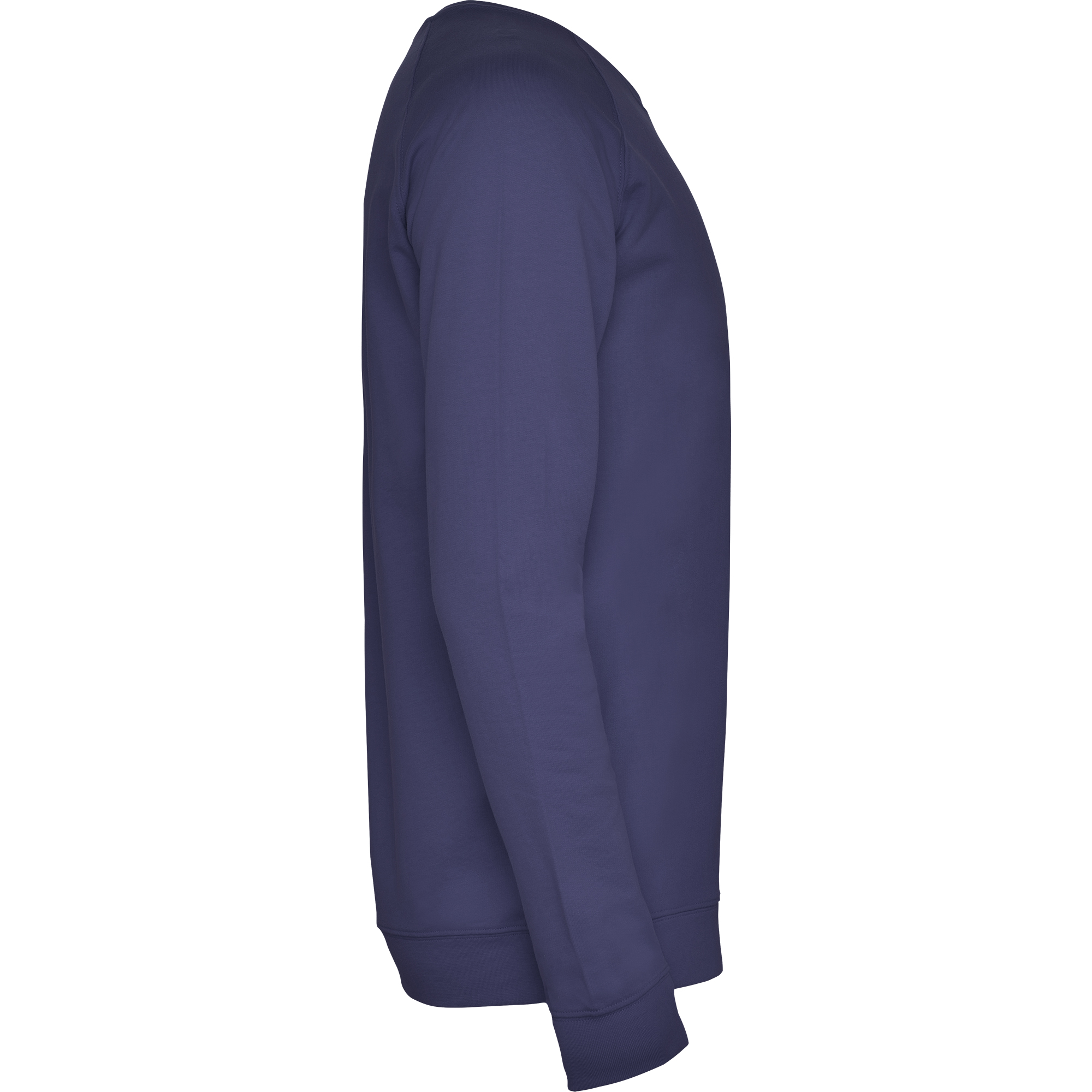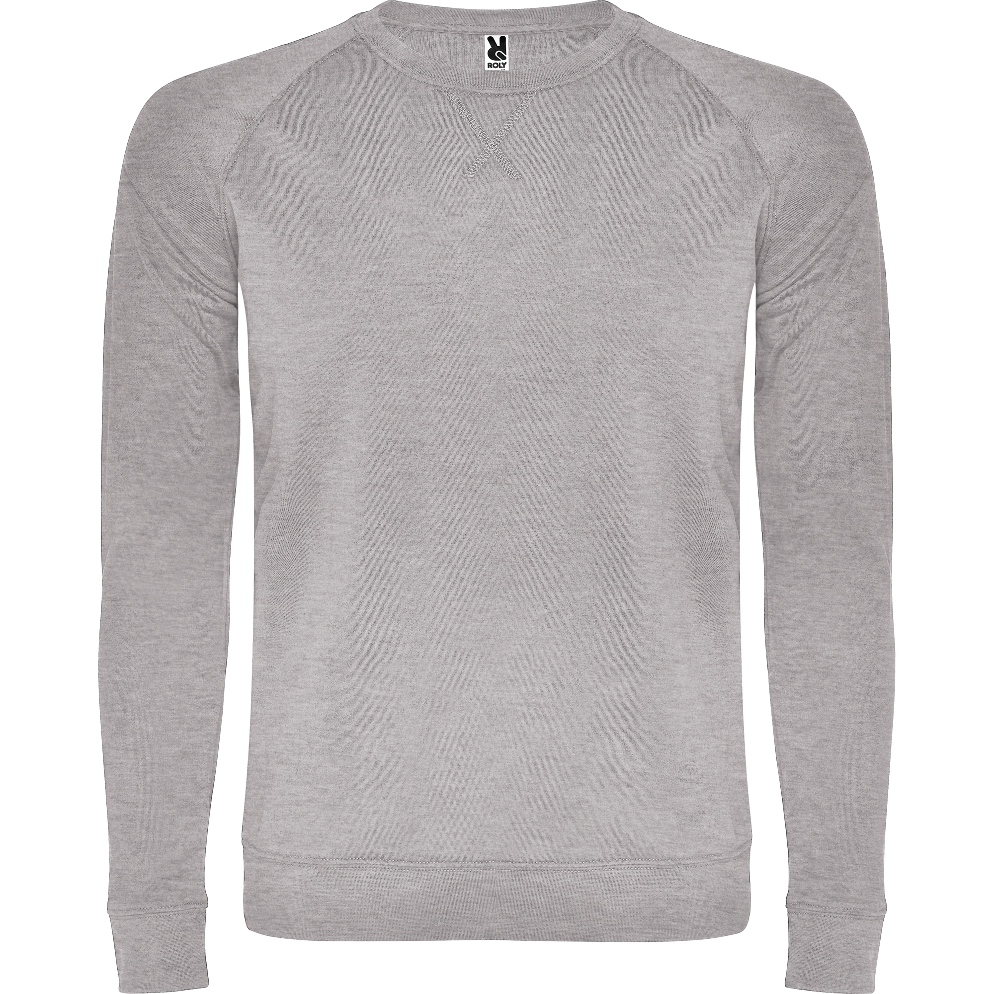 Sudadera de algodón de manga entallada estilo ranglán. Con cuello, puños y cintura, en canalé 1×1. Cuello redondo con adorno de costuras remalladas cruzadas y cubrecosturas de refuerzo en el interior del cuello.