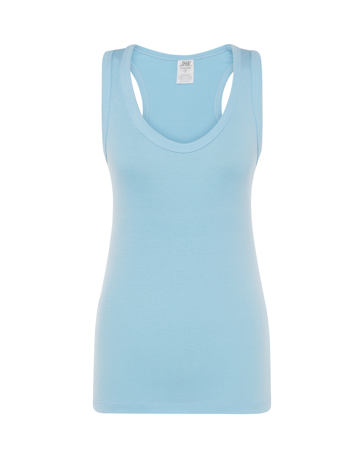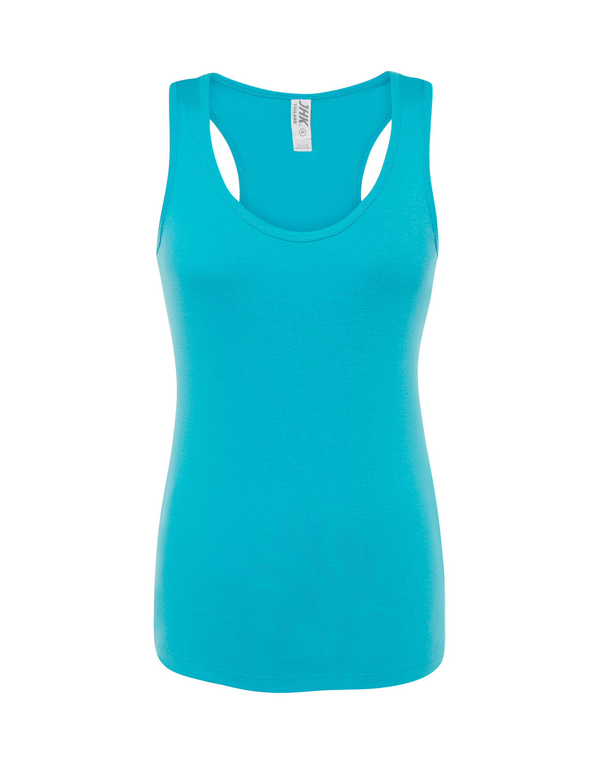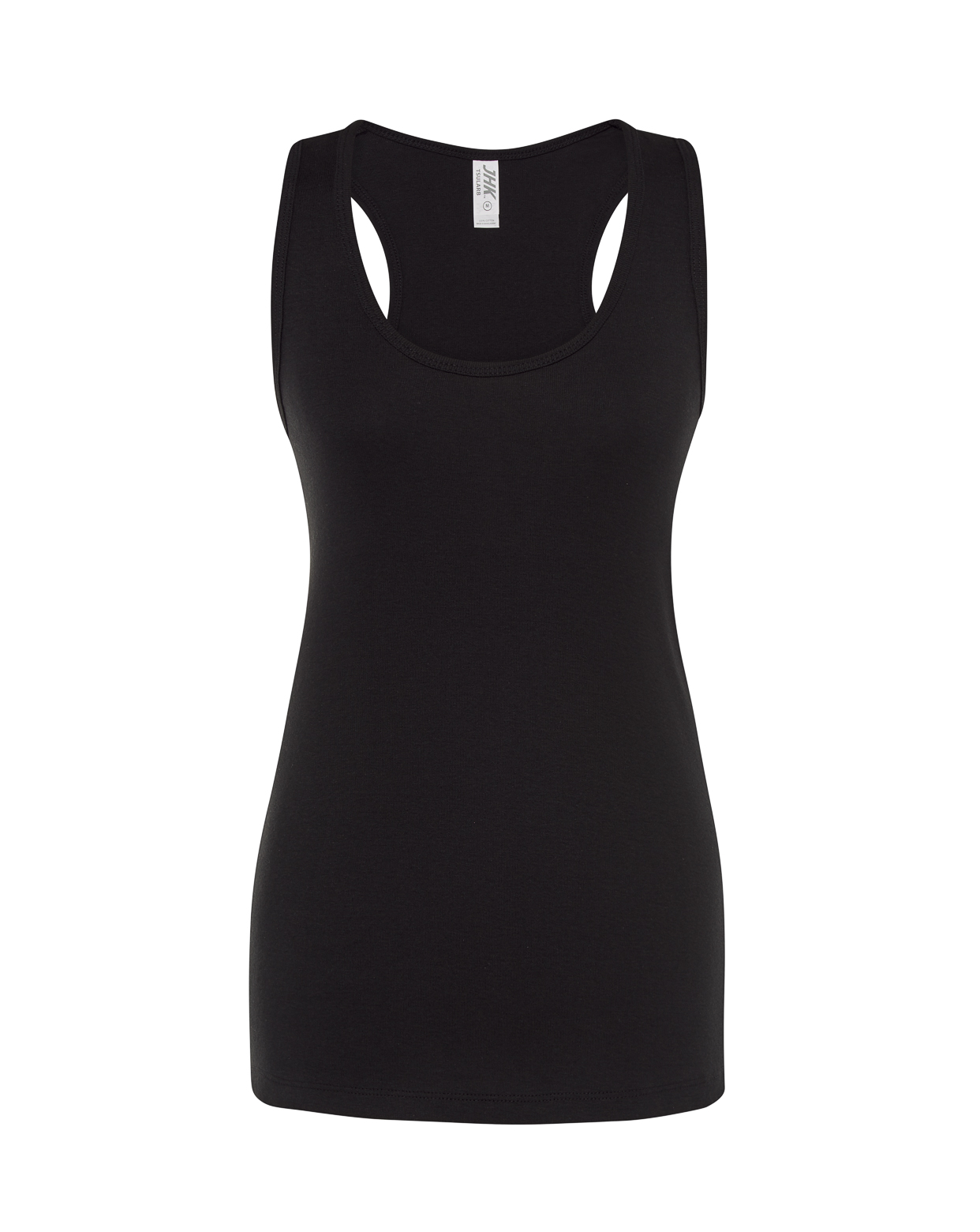 Camiseta básica de tirantes para chica con espalda de nadador y ligeramente entallada. Etiqueta removible. Disponible en 13 colores y desde la talla XS hasta la XL.