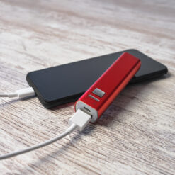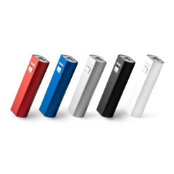 Batería externa realizada en aluminio con capacidad 2600 mAh. Indicador de carga LED. Incluye cable con conexión USB y Micro USB.