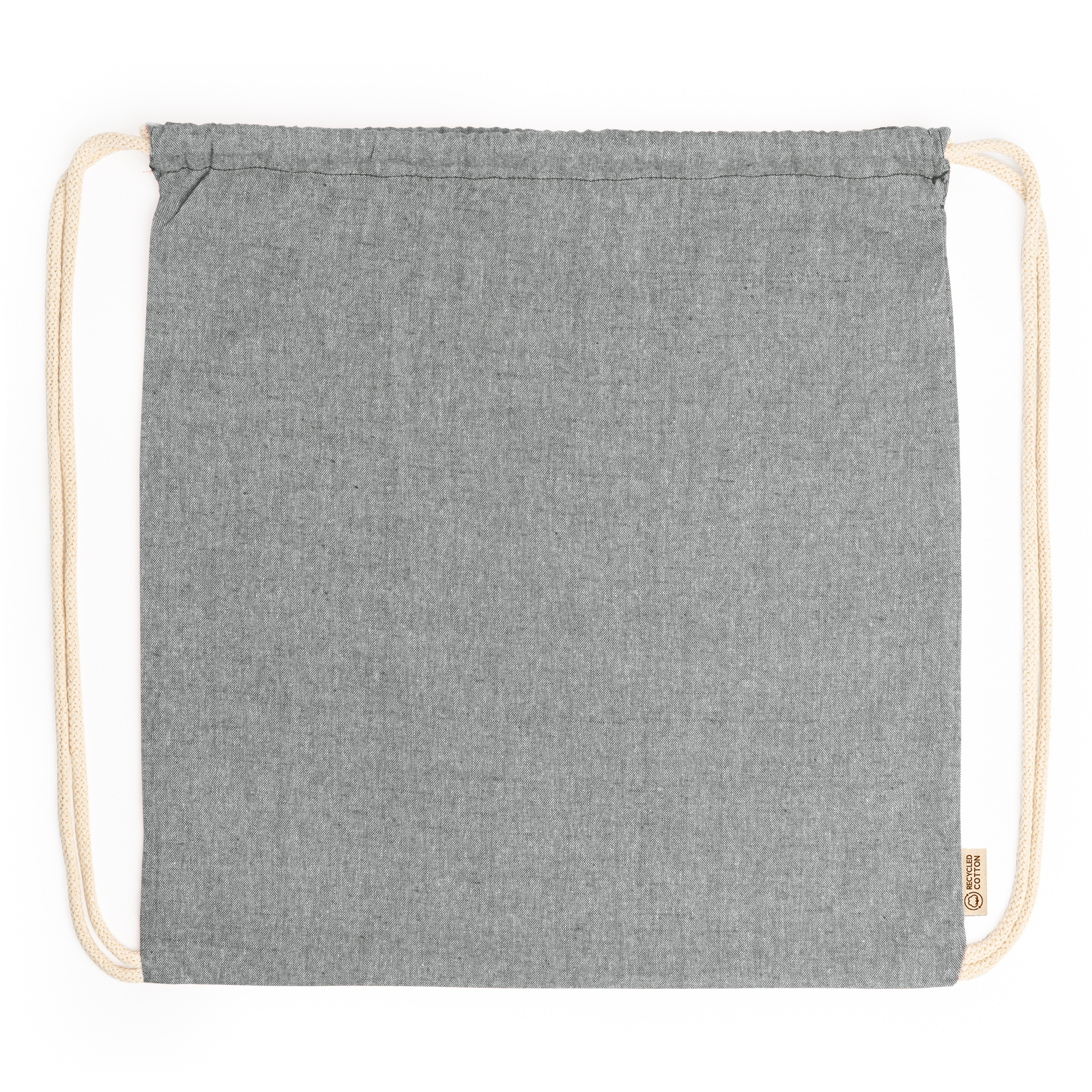 Mochila de cordones en algodón reciclado de 120 g/m² con acabado jaspeado y cordones en color natural. Disponible en varios colores.