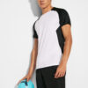 Camiseta técnica de manga ranglán transpirable. Cuello redondo con cubre costuras a tono. Tejido suave, ligero y fácil secado. Mangas y paneles laterales a contraste.
