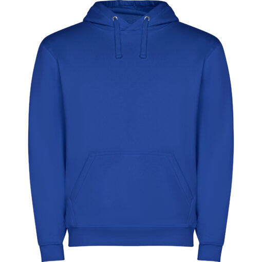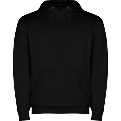 Sudadera capucha con bolsillo canguro y cordón plano ajustable. Puños y cinturilla con punto canalé 1×1 con elastano. Modelo de niño sin cordón.