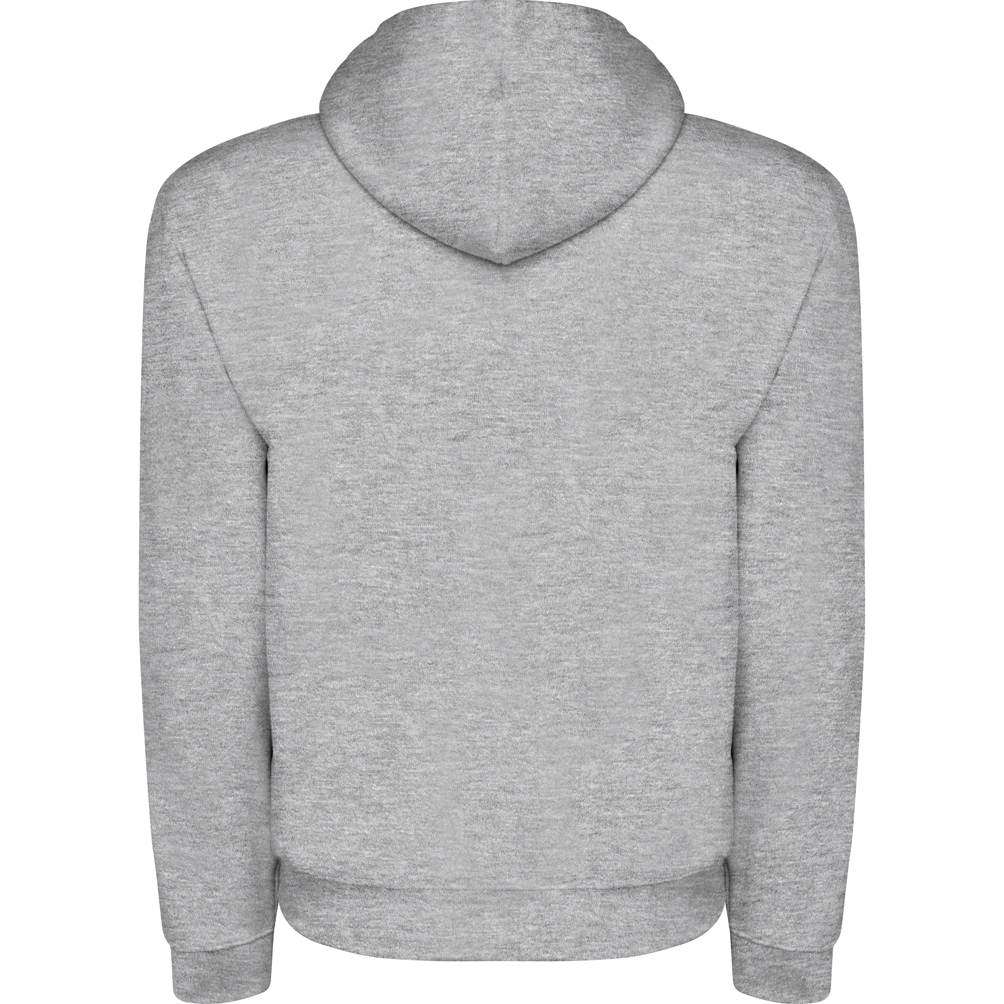 Sudadera capucha con bolsillo canguro y cordón plano ajustable. Puños y cinturilla con punto canalé 1×1 con elastano. Modelo de niño sin cordón.