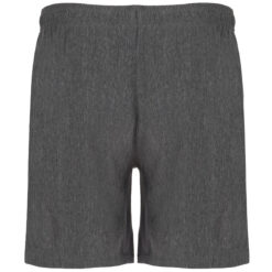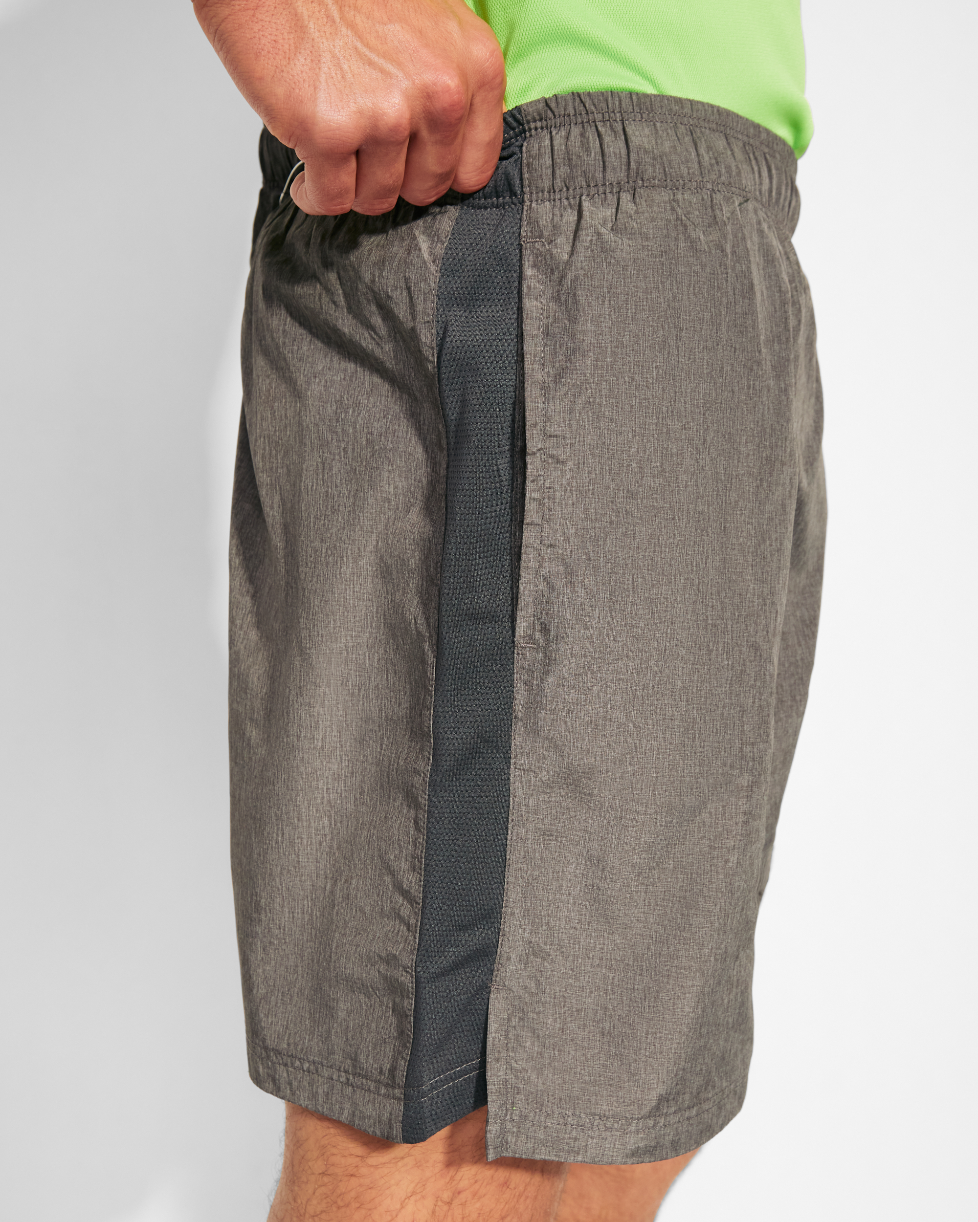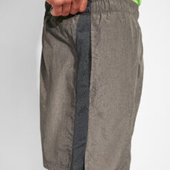 Bermuda con dos tejidos y slip interior. Cinturilla elástica con cordón interior cruzado a contraste. Banda lateral e interior de la pierna en tejido transpirable. Dos bolsillos laterales. Apertura lateral en el bajo con forma asimétrica.