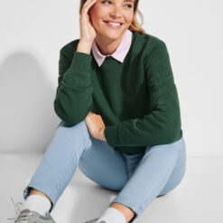 Sudadera en diseño clásico, con cuello, puños y cinturilla de punto canalé 1×1 con elastano. Cubrecosturas reforzado en cuello.