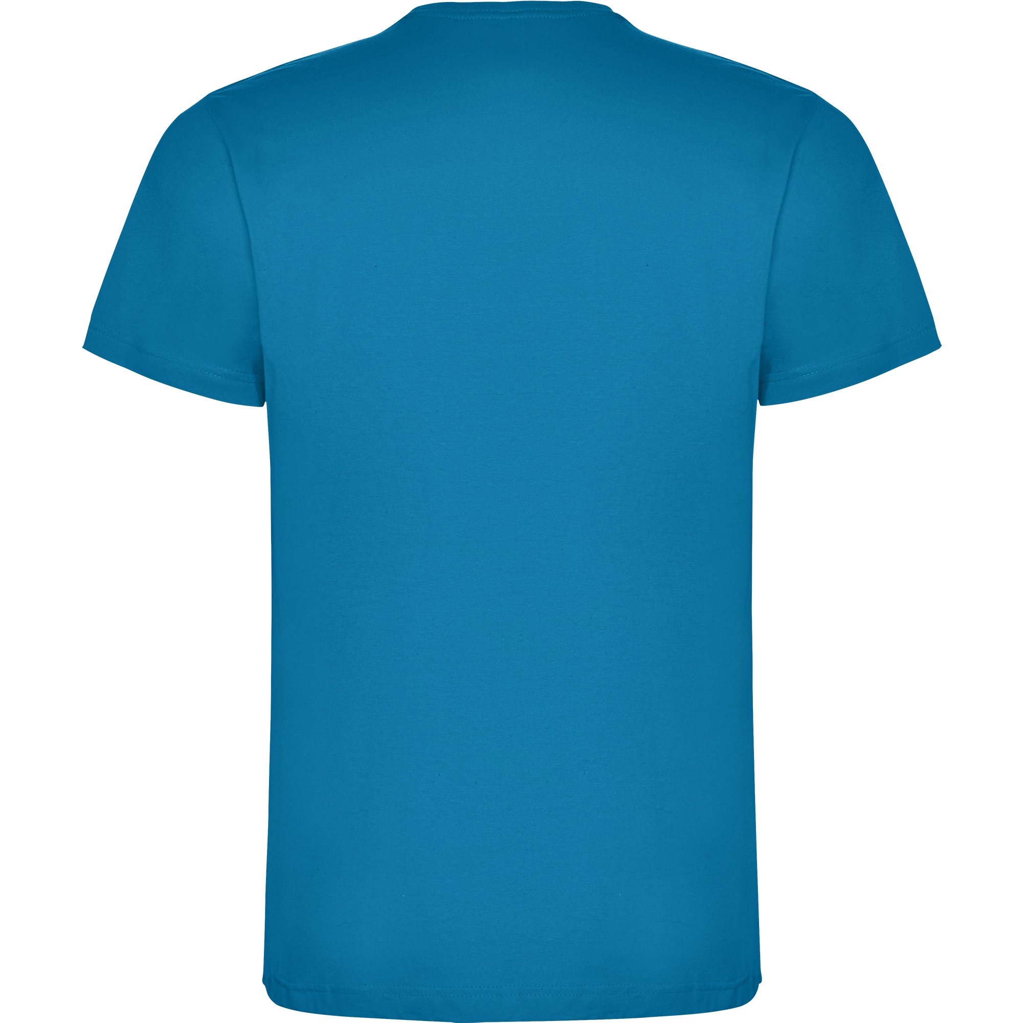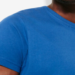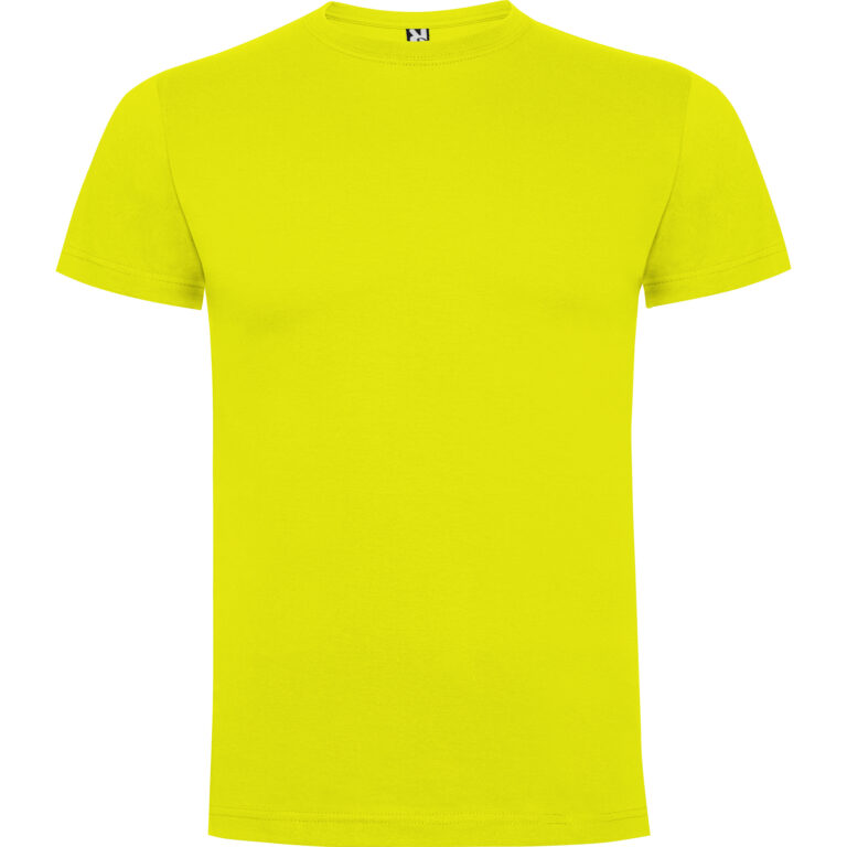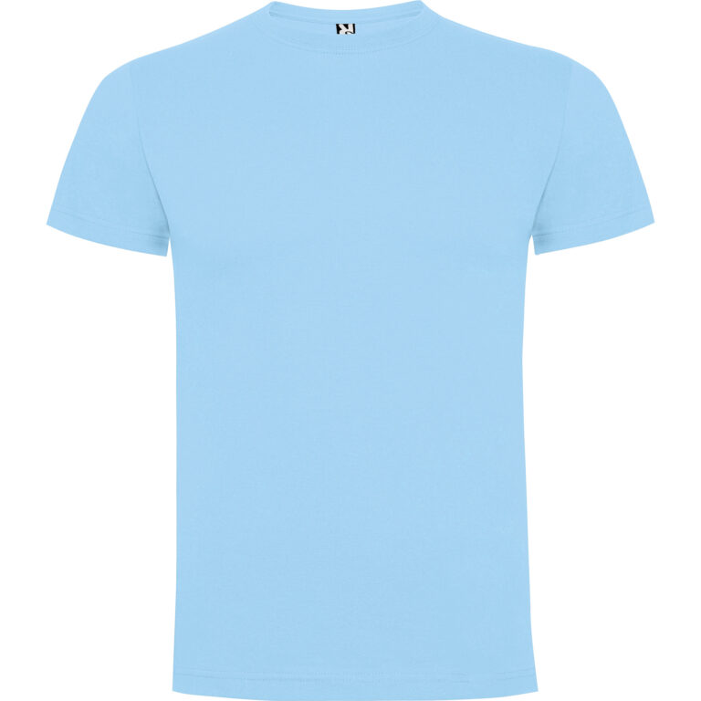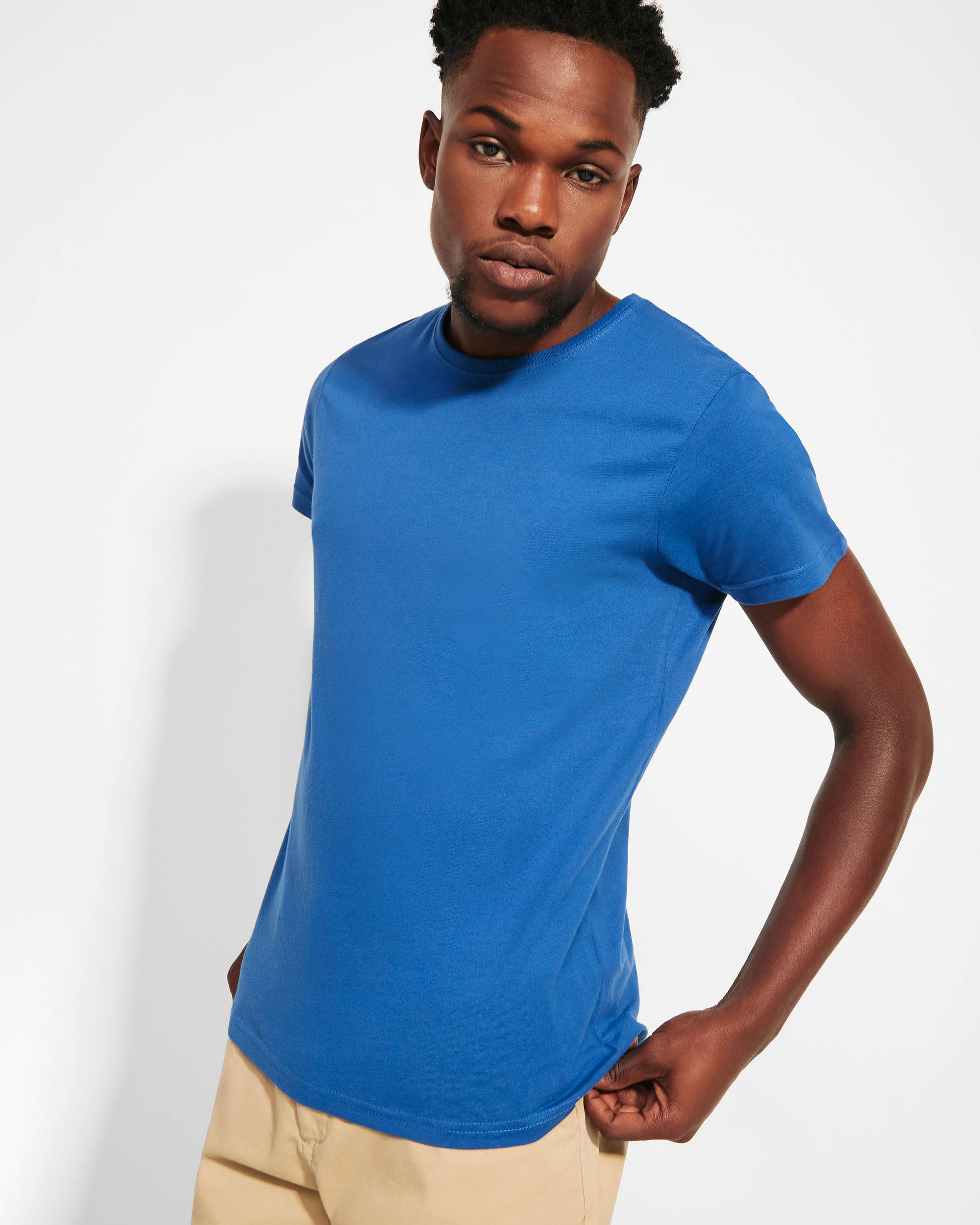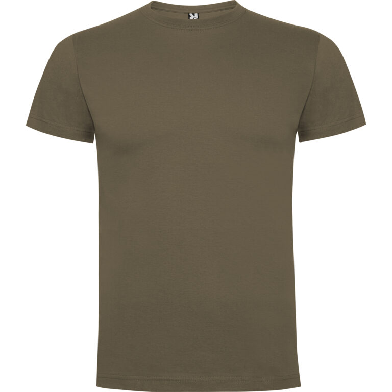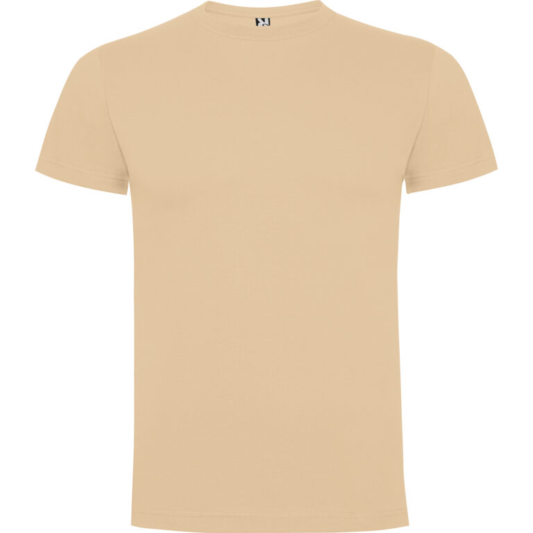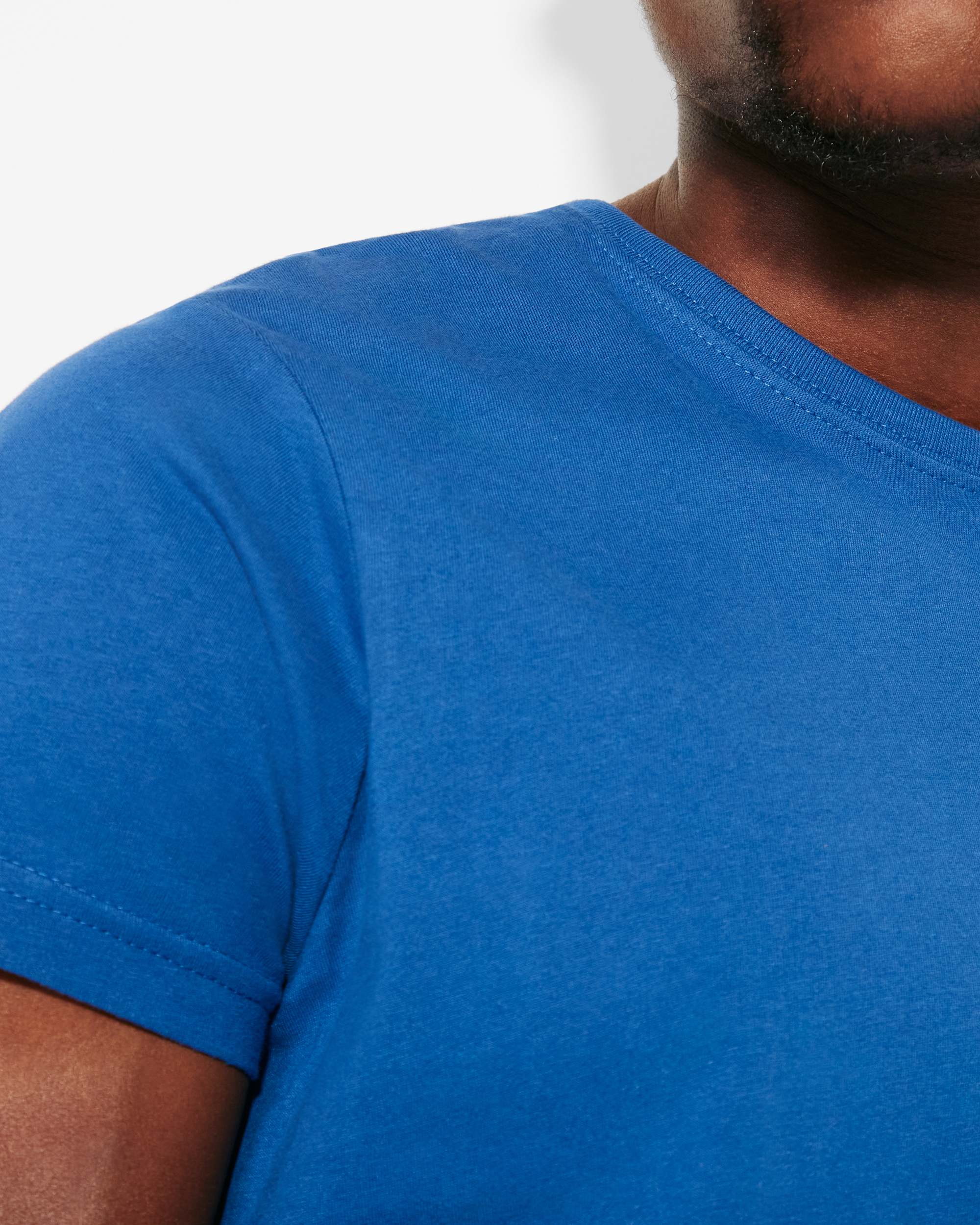 Camiseta de manga corta. Cuello redondo de 4 capas en canalé 1×1 con cubrecosturas de hombro a hombro. Costuras laterales.