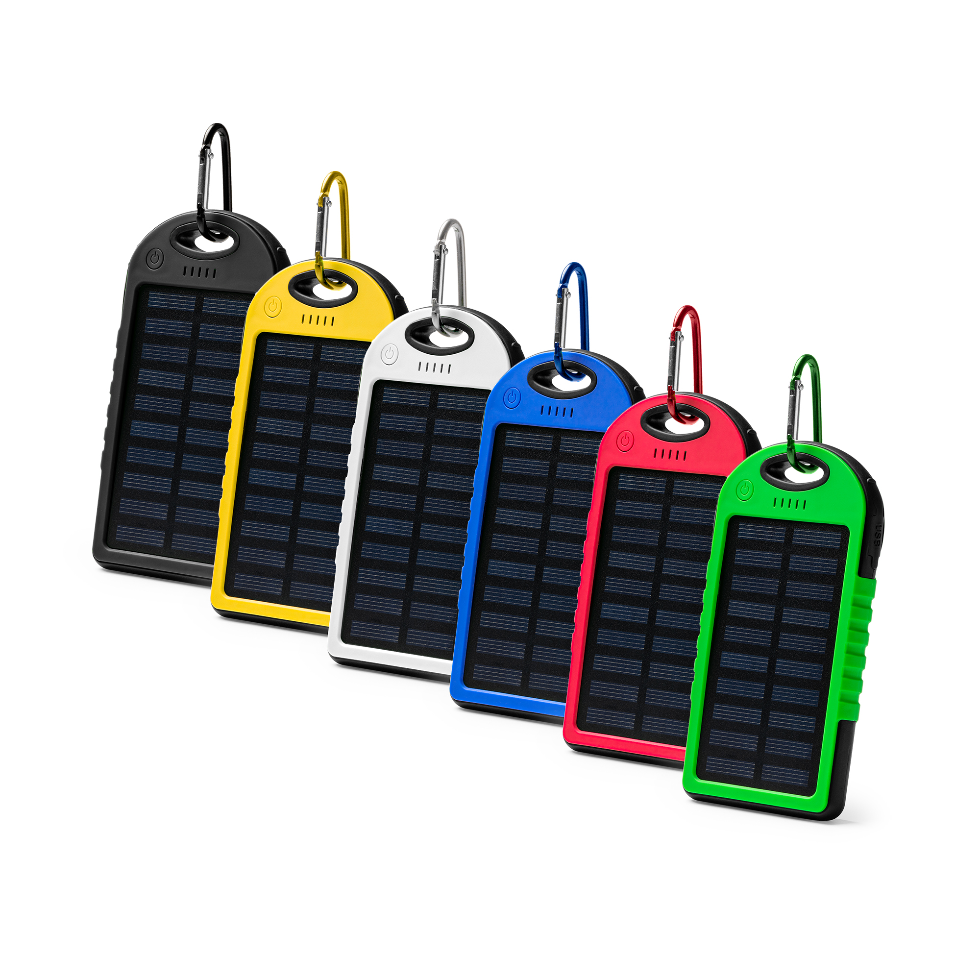 Batería externa solar, resistente a salpicaduras de agua y con gran capacidad de carga. 4000 mAh. Indicador de carga LED y luz. Salida de corriente 5W/2.1A.
