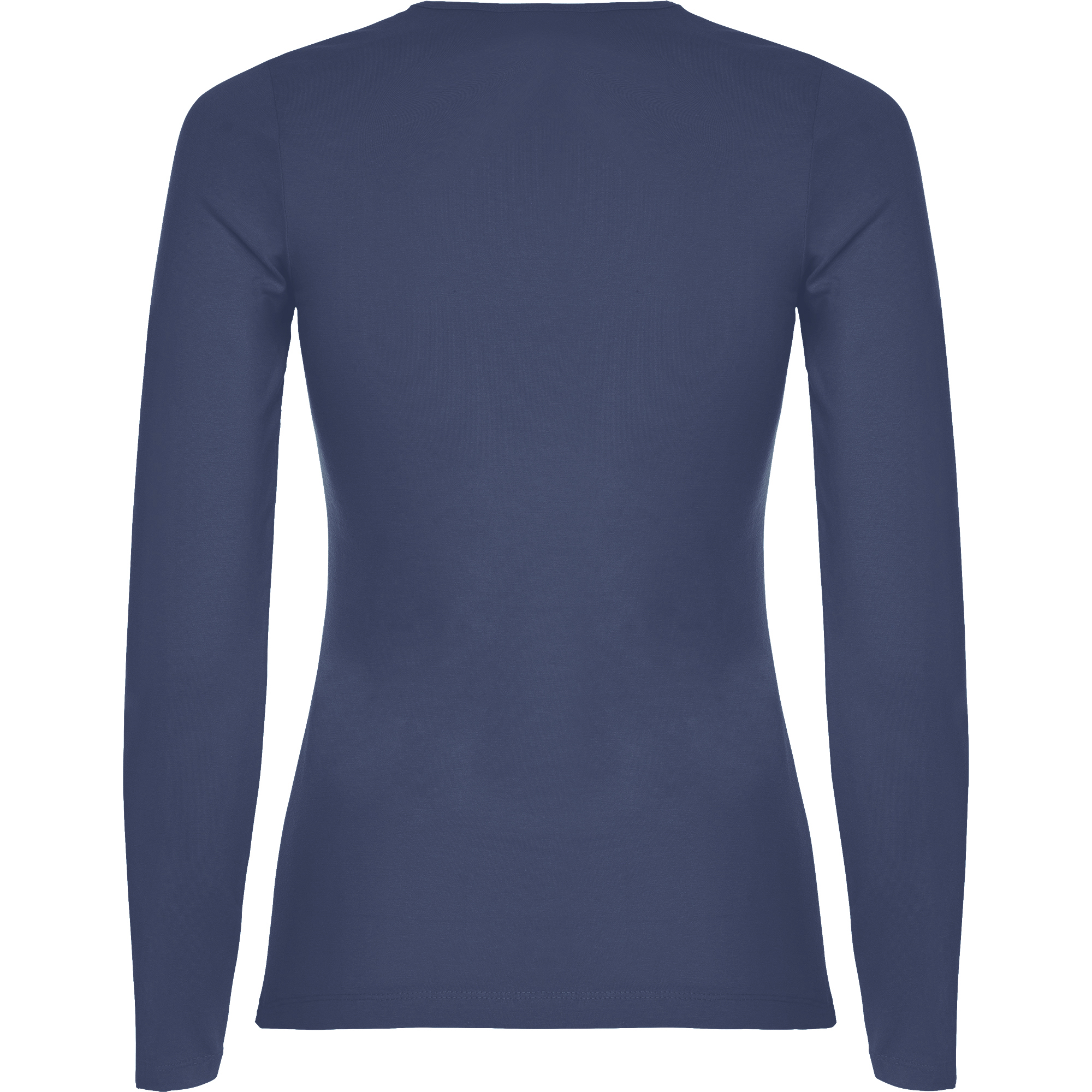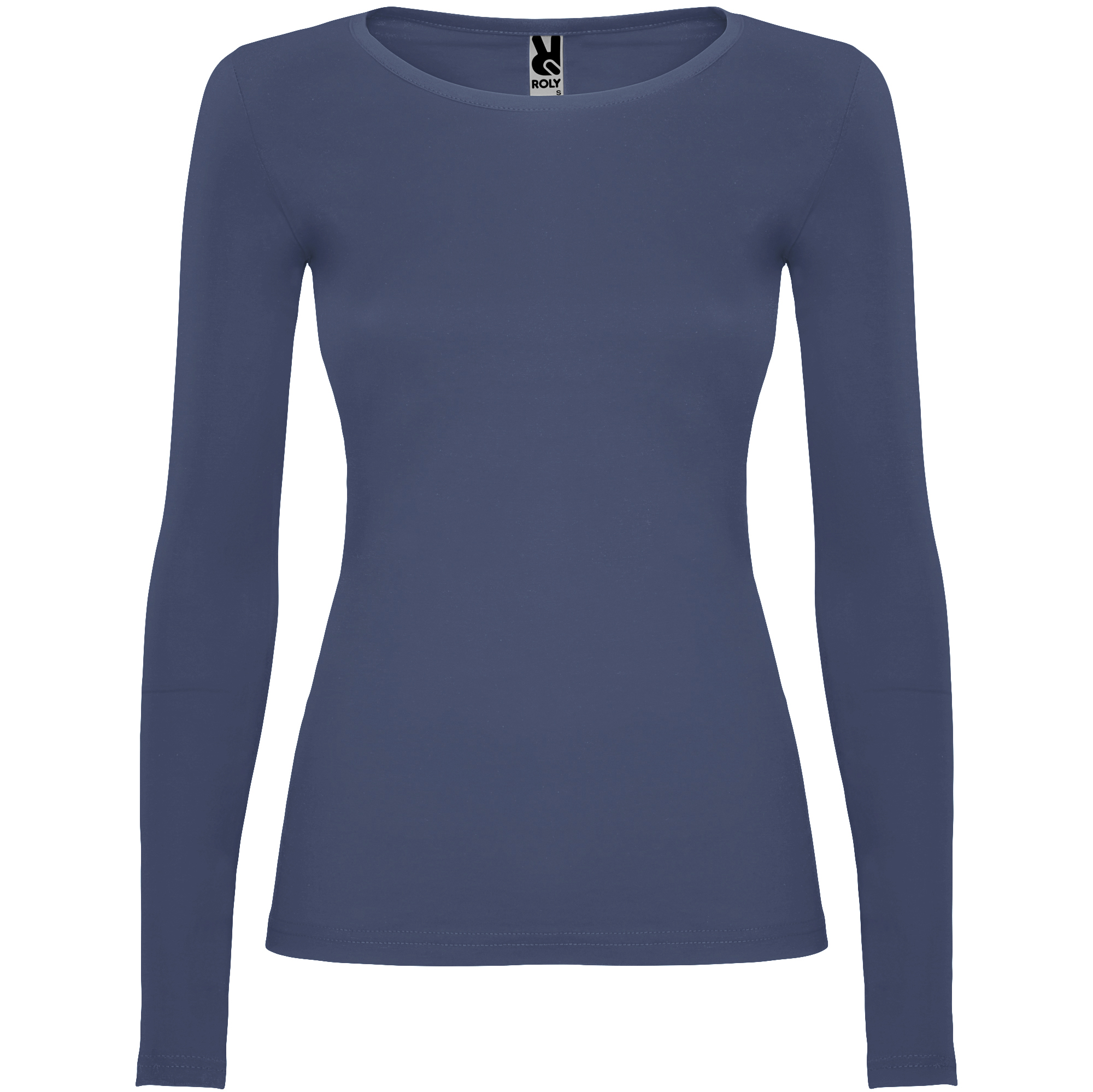Camiseta semientallada, de manga larga y cuello acabado con ribete fino. Sin puños. Costuras laterales.