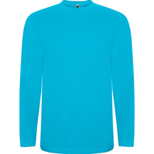Camiseta de manga larga, tejido tubular y cuello redondo de 4 capas. Cubrecosturas de refuerzo en cuello y hombro. Sin puños.