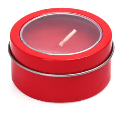 Vela aromática a vainilla en recipiente metálico redondo, con tapa con ventana transparente. Color de la vela a juego con el recipiente. Mecha blanca.