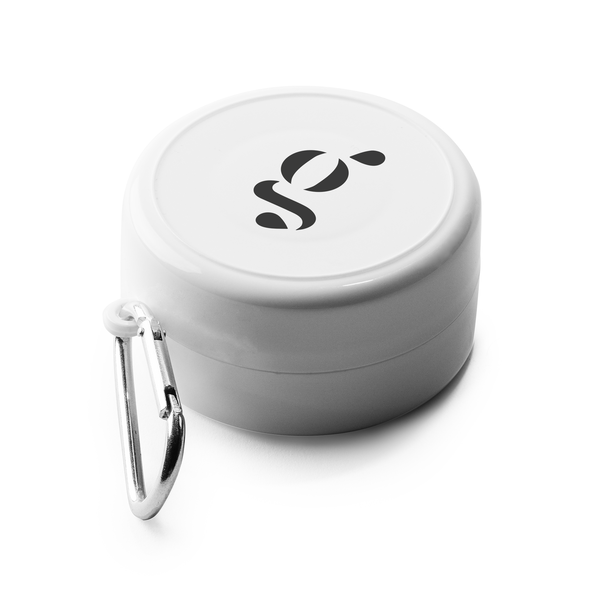 Vaso plegable anti-bacterias con tapa y mosquetón plateado de transporte. 220 ml. de capacidad.