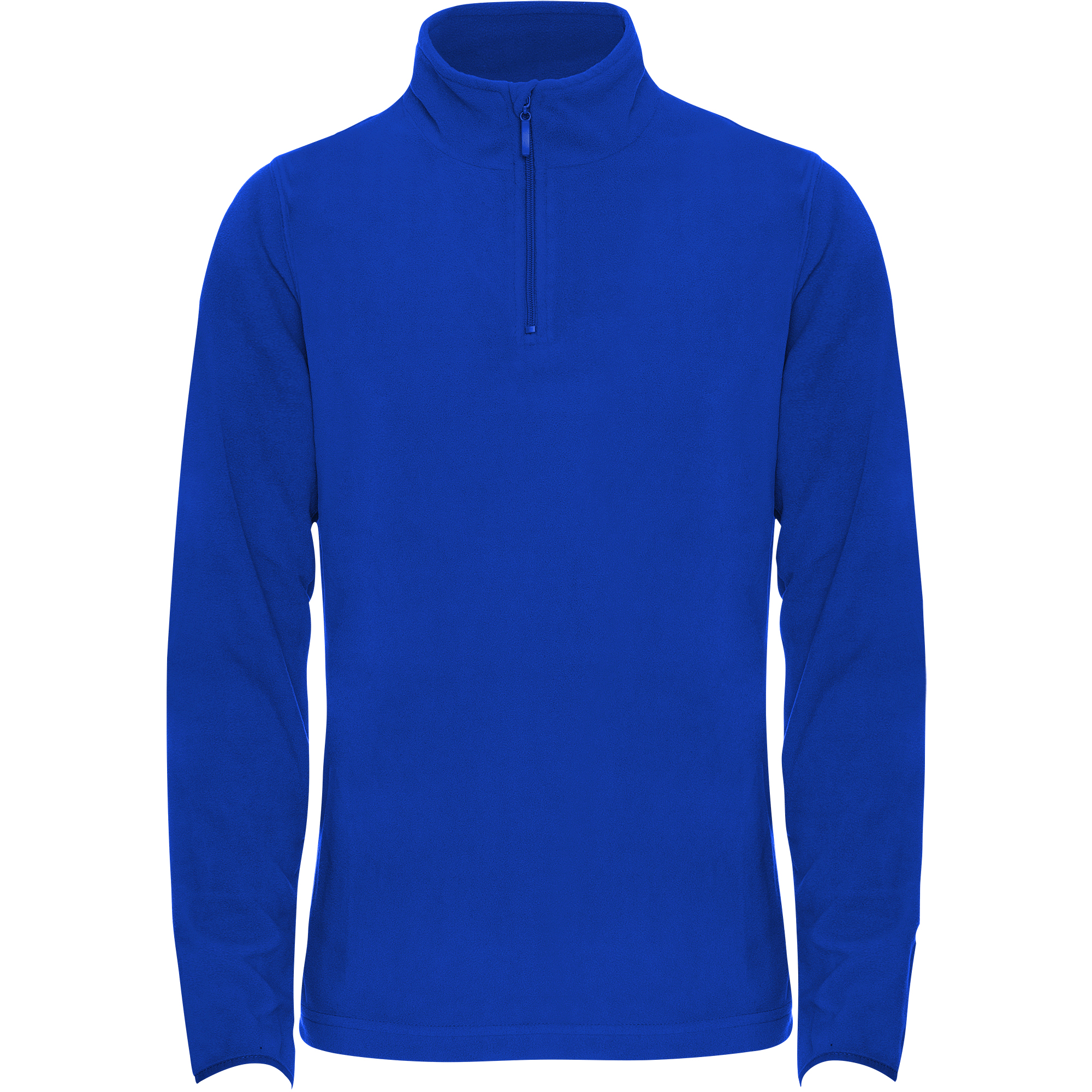 Micropolar con media cremallera en cuello y protector de barbilla. Puños con ribete elástico a tono. Corte entallado.