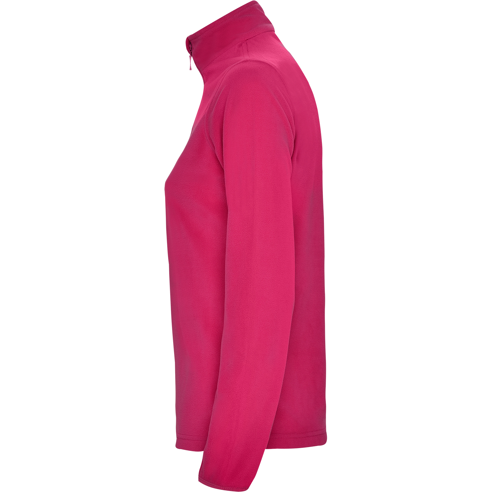 Micropolar con media cremallera en cuello y protector de barbilla. Puños con ribete elástico a tono. Corte entallado.
