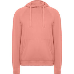 Sudadera con capucha unisex. Bolsillo canguro. Cordones planos con ojales bordados. Puños y cintura en tejido principal. Detalle de costura con relieve en mangas.