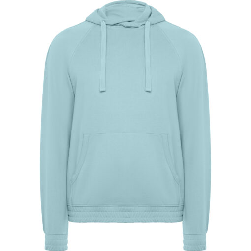 Sudadera con capucha unisex. Bolsillo canguro. Cordones planos con ojales bordados. Puños y cintura en tejido principal. Detalle de costura con relieve en mangas.