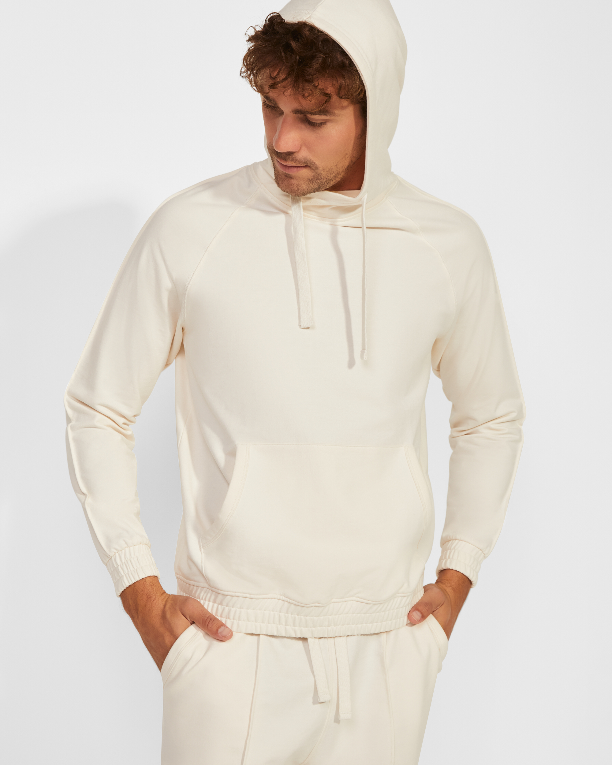Sudadera con capucha unisex. Bolsillo canguro. Cordones planos con ojales bordados. Puños y cintura en tejido principal. Detalle de costura con relieve en mangas.