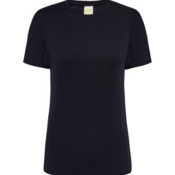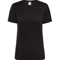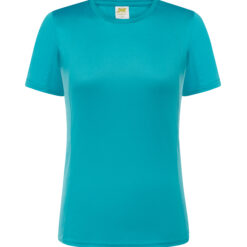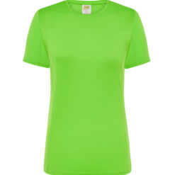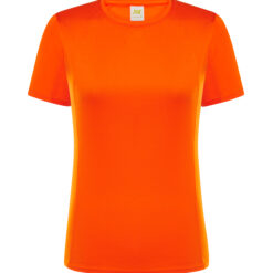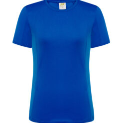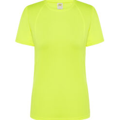 Camiseta deportiva para mujer de manga corta, ligeramente entallada, con costura decorativa en frente, espalda y mangas. Etiqueta removible. Disponible en 12 colores y desde la talla S hasta la XXL.