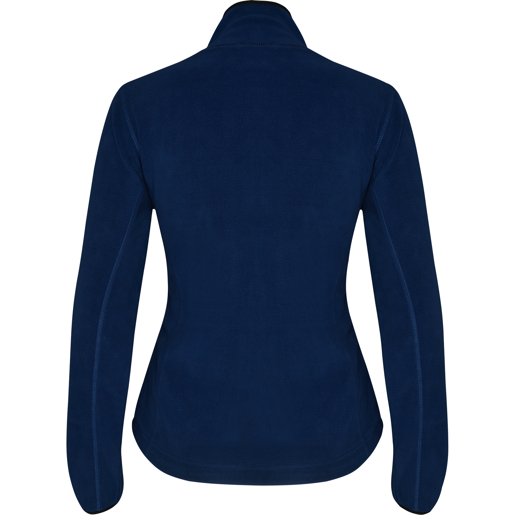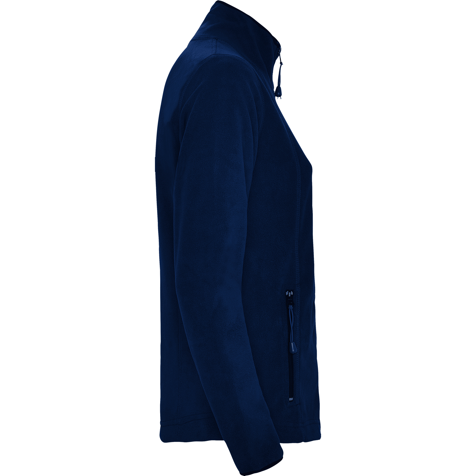 Chaqueta micropolar para deporte al aire libre, con cuello alto y manga larga con ribetes en contraste. Bolsillo con cremallera en manga izquierda y cremallera central, ambas en contraste. Costuras en lateral y pecho. Codera en el mismo tejido.