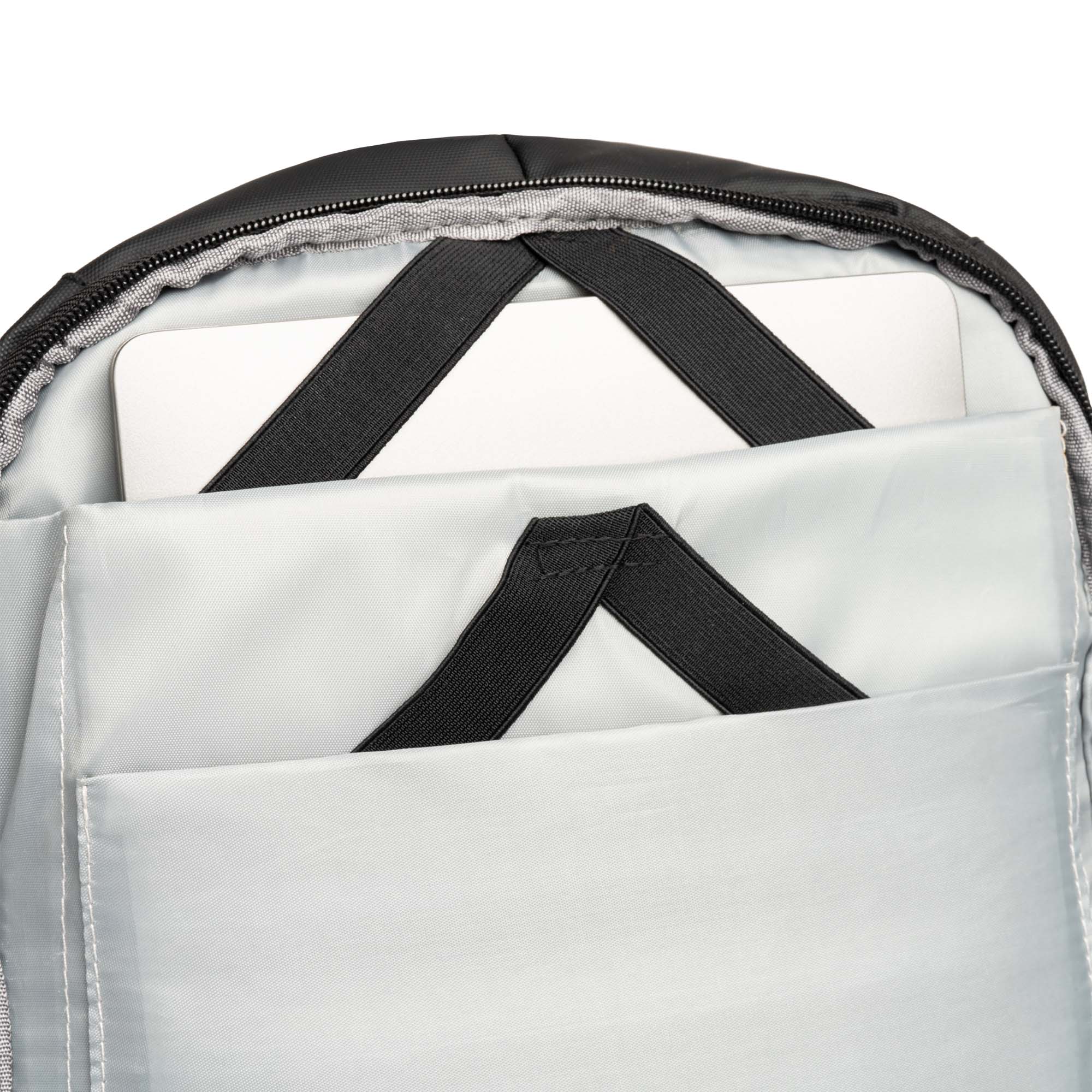 Mochila antirrobo realizada en nylon. Compartimento con salida USB para conectar un Power Bank (no incluido). Incluye cable micro USB. Bolsillo multiusos en tira derecha. Bolsillo principal con dos compartimentos acolchados ideal para portátil y Tablet.
