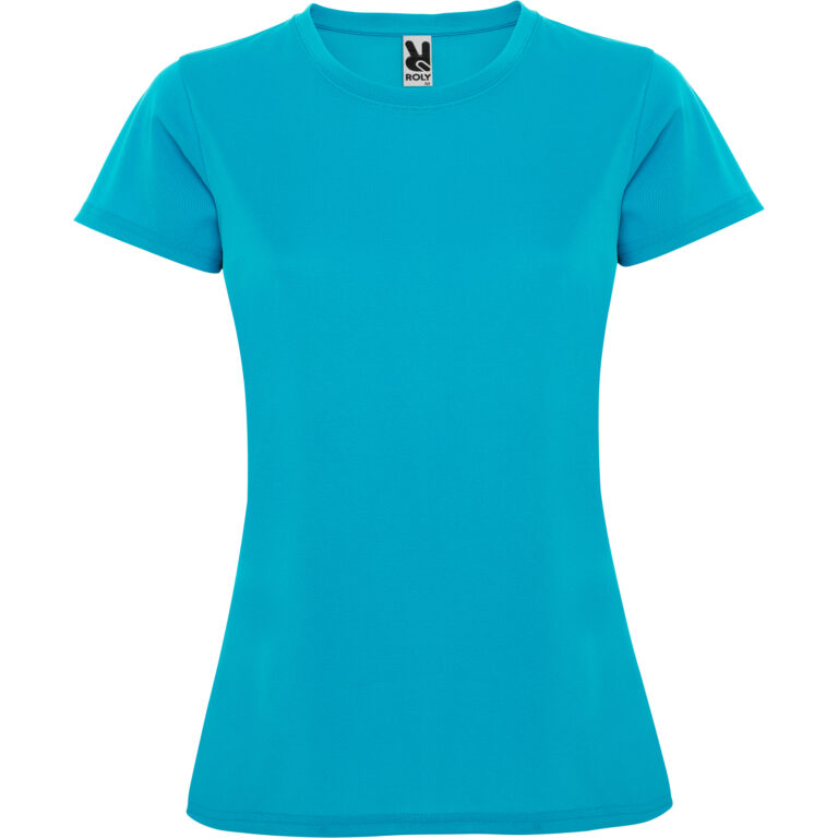 Camiseta técnica de manga corta. Cuello redondo con cubrecosturas. Corte entallado.