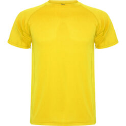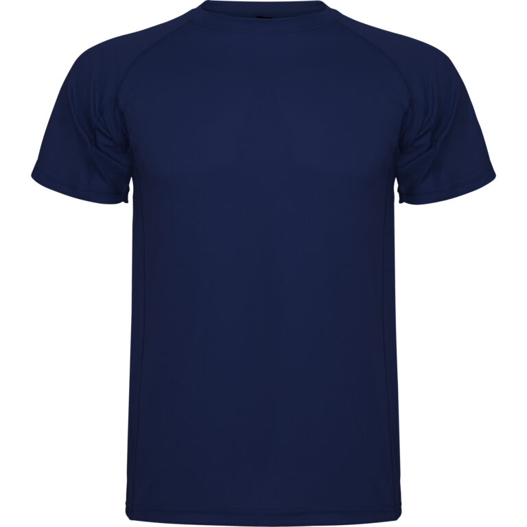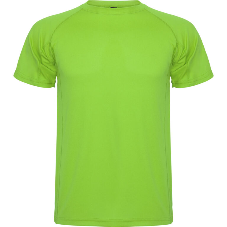 Camiseta técnica de manga corta ranglán. Escote redondeado con cubrecosturas. Cortes laterales con remallado al tono.