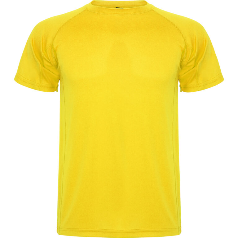 Camiseta técnica de manga corta ranglán. Escote redondeado con cubrecosturas. Cortes laterales con remallado al tono.