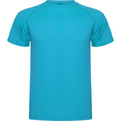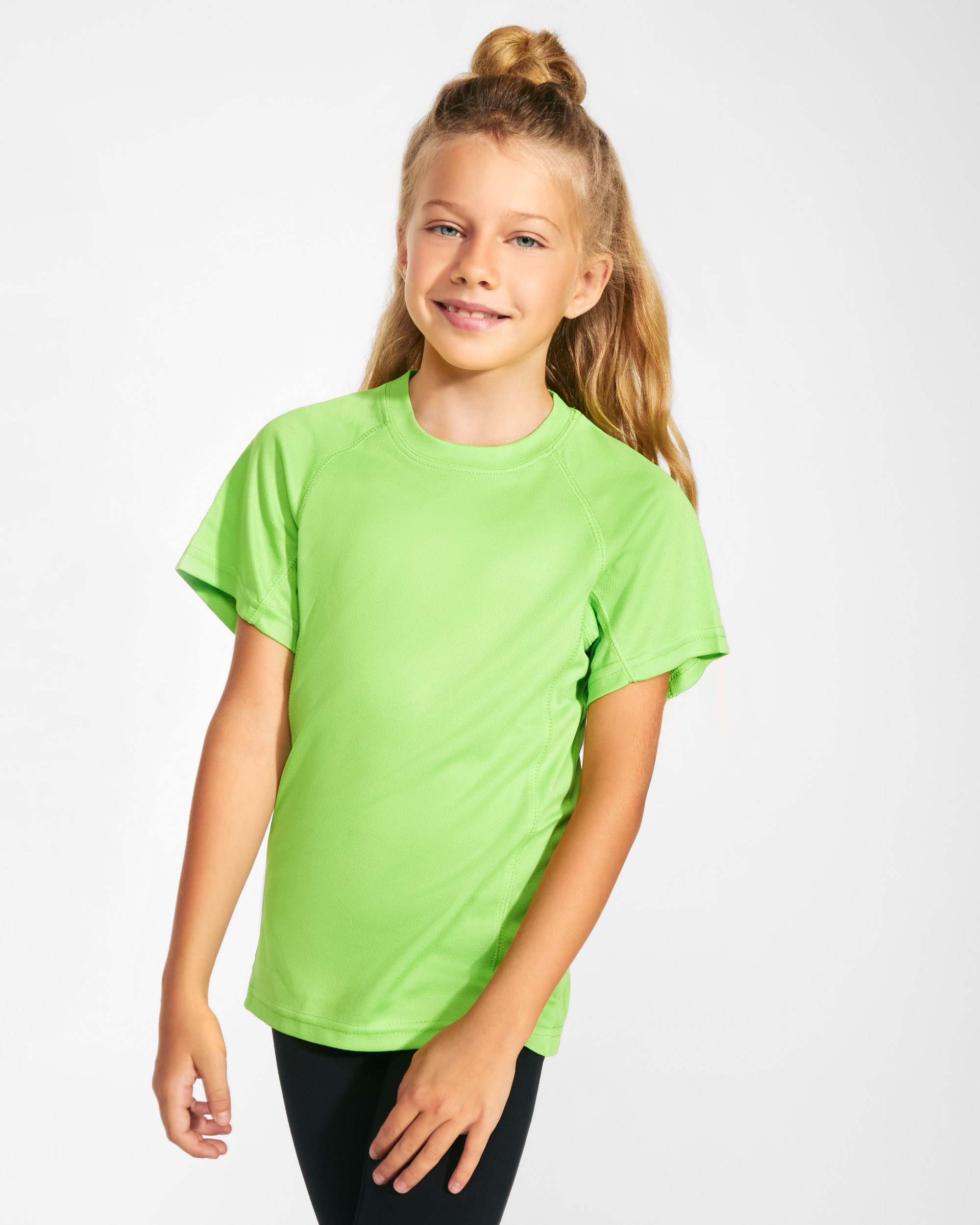 Camiseta técnica de manga corta ranglán. Escote redondeado con cubrecosturas. Cortes laterales con remallado al tono.