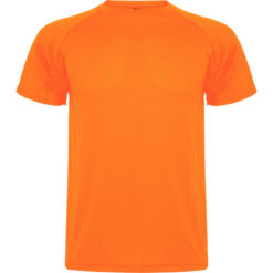 Camiseta técnica de manga corta ranglán. Escote redondeado con cubrecosturas. Cortes laterales con remallado al tono.
