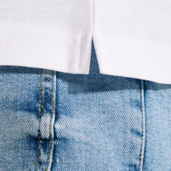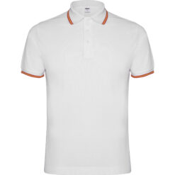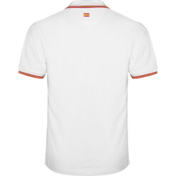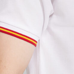 Polo de manga corta, cuello y bocamangas jackard con tapeta de tres botones. Cubrecosturas reforzado en cuello. Adorno de bandera bordado en la espalda.