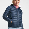 Chaqueta de mujer acolchada con relleno tacto pluma y capucha.