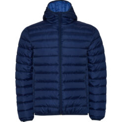 Chaqueta de hombre acolchada con relleno tacto pluma y capucha fija ajustada. ·Cremallera invertida a tono con protector de barbilla.