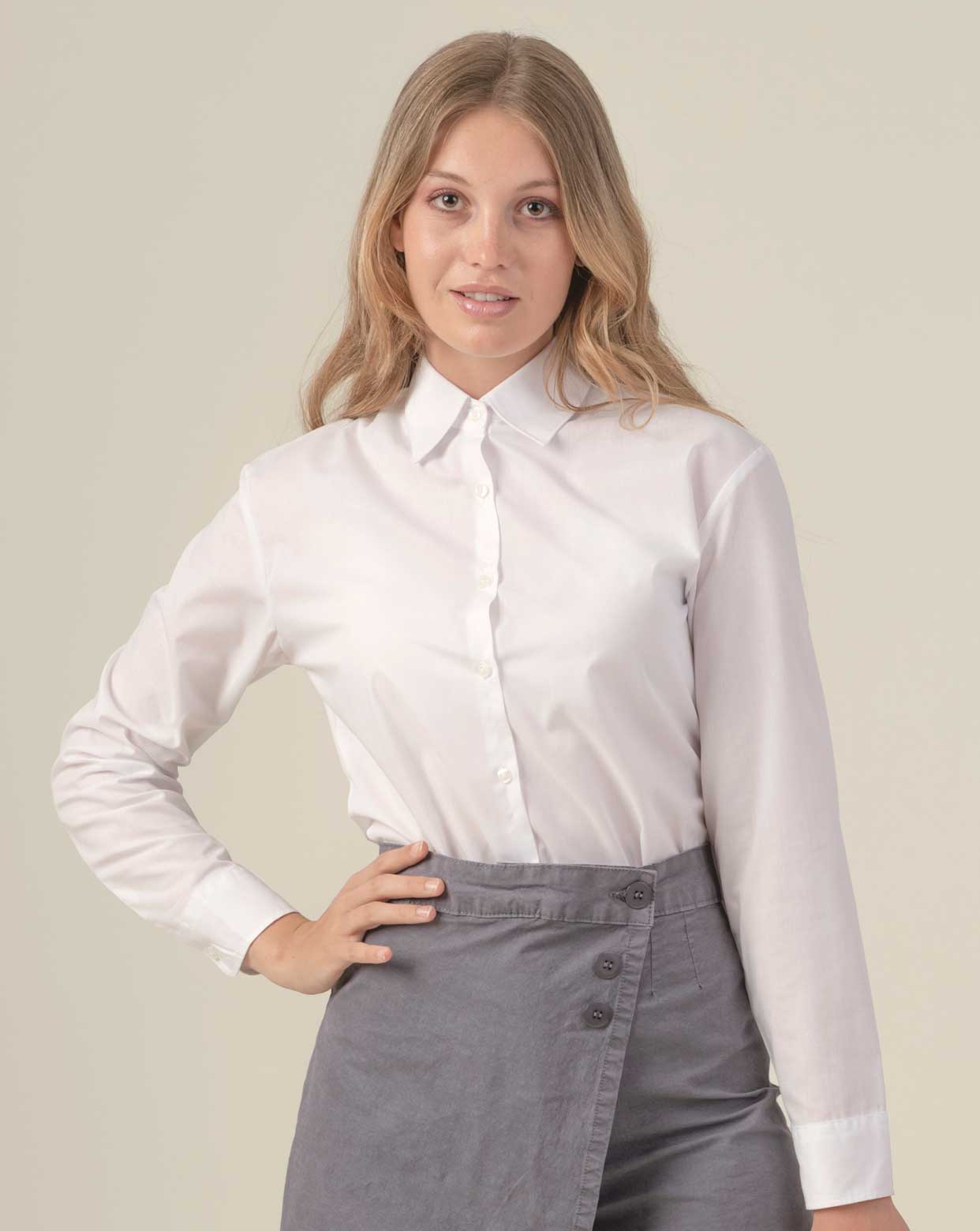 Camisa que repele agua y aceite. Entallada de manga larga, en popelín. Cuerpo ajustado. Botones a tono. Tapetas en mangas con botón y pliegue. Puños con dos botones.