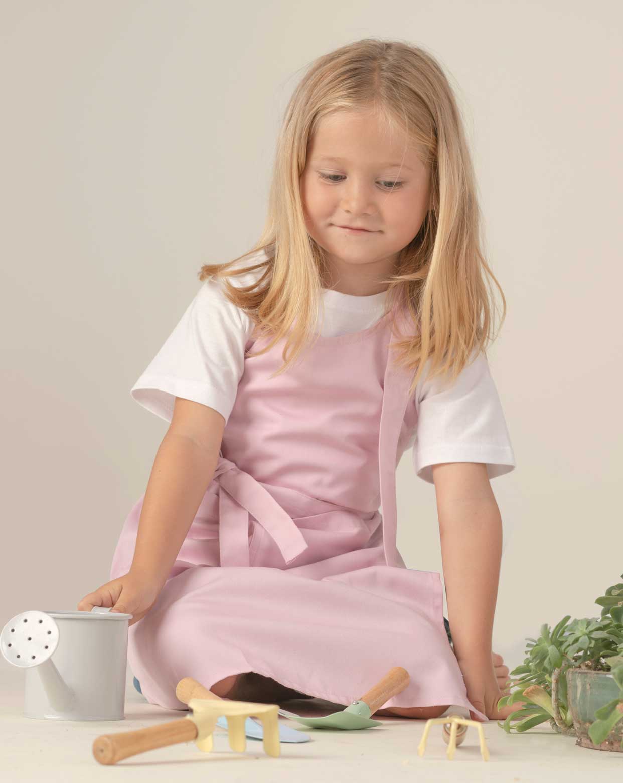 Delantal de niño unisex largo de cuerpo entero. Cinta de cuello ajustable con hebilla deslizante de plástico.Dos cintas en la cintura.Gran bolsillo frontal doble.