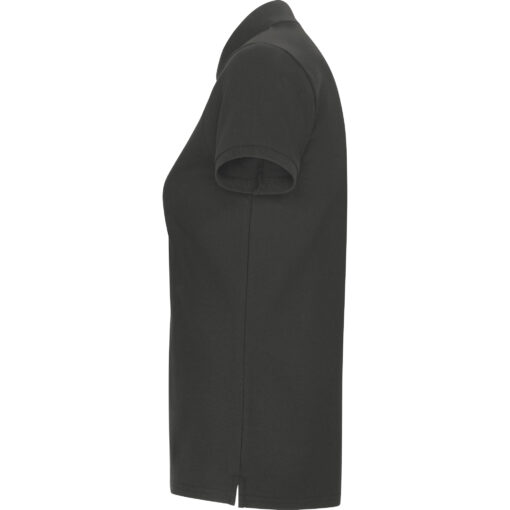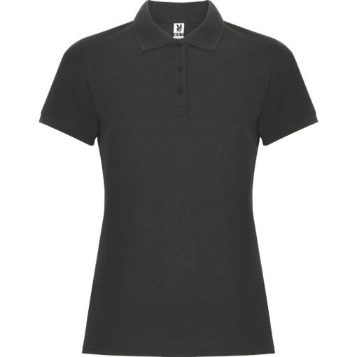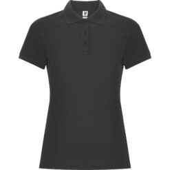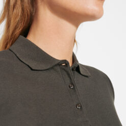 Polo de manga corta entallado. Cuello y ribete de manga en canalé 1×1. Tapeta con 3 botones. Cubrecosturas reforzado en cuello. Aperturas laterales en el bajo.