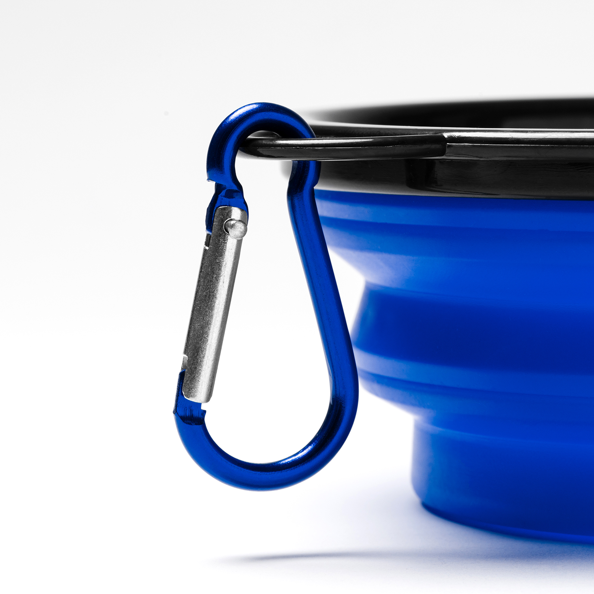 Cómodo y resistente bowl plegable para mascotas. Apto para líquidos y sólidos. Fácil guardado. Disponibilidad en varios colores. Capacidad de 450 ml. Mosquetón metálico para transporte a juego.