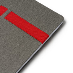 Bloc de notas A5 con tapa rígida de RPET. Incluye soporte para bolígrafo y móvil. Cuentan con 80 hojas lisas.