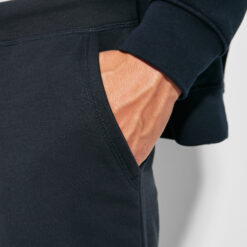 Pantalón corto deportivo con cinturilla elástica ancha con cordón ajustable. Adorno de falsa cremallera. Bolsillos laterales, bolsillo trasero y bajos vueltos con pespuntes de seguridad.