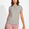 Polo de mujer de manga corta. Cubrecosturas reforzado en el interior del cuello. Cuello y ribete de manga acanalado. Costuras laterales y corte ajustado. Tapeta fina con tres botones. Aperturas en los laterales del bajo.