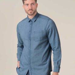 Camisa casual con tejido vaquero. Manga larga. Cuello sin botones. Bolsillo en el lado izquierdo….