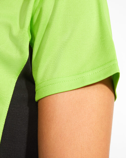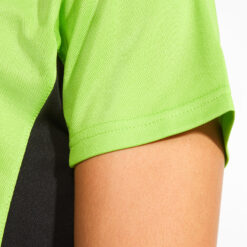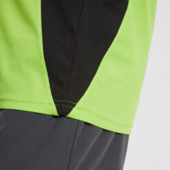 Camiseta técnica de manga corta transpirable. Cuello redondo con cubre costuras a tono. Tejido de fácil secado. Combinación de colores, paneles laterales a contraste.