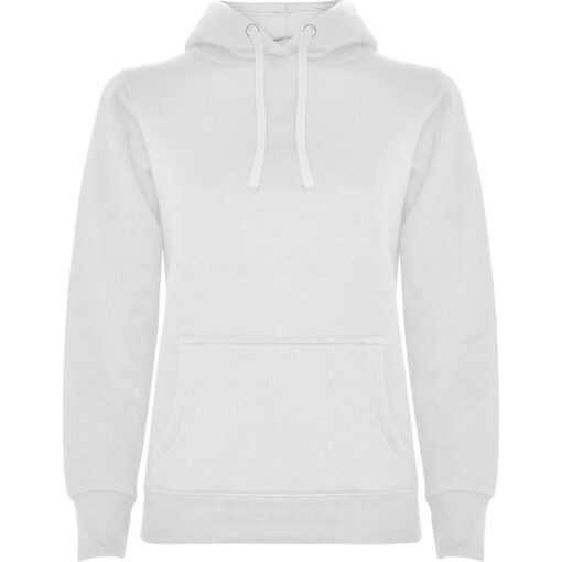 Sudadera entallada de corte femenino con capucha bicolor de doble tejido, con cordón contrastado ajustable, cubrecosturas en el cuello y bolsillo canguro. Punto canalé con elastano 1×1 en puños y cintura. Detalle thumb slit – puños con apertura para el pulgar.
