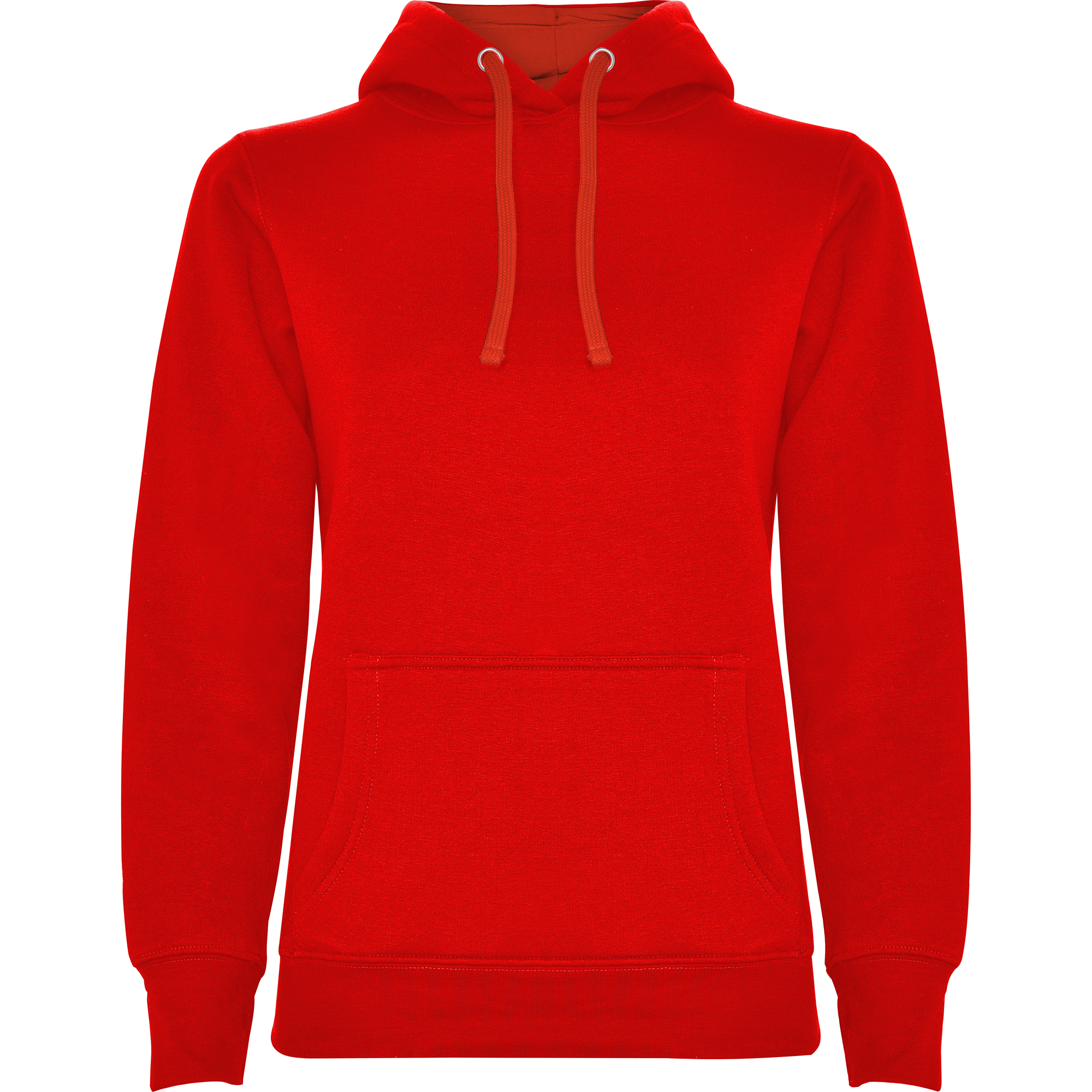 Sudadera entallada de corte femenino con capucha bicolor de doble tejido, con cordón contrastado ajustable, cubrecosturas en el cuello y bolsillo canguro. Punto canalé con elastano 1×1 en puños y cintura. Detalle thumb slit – puños con apertura para el pulgar.