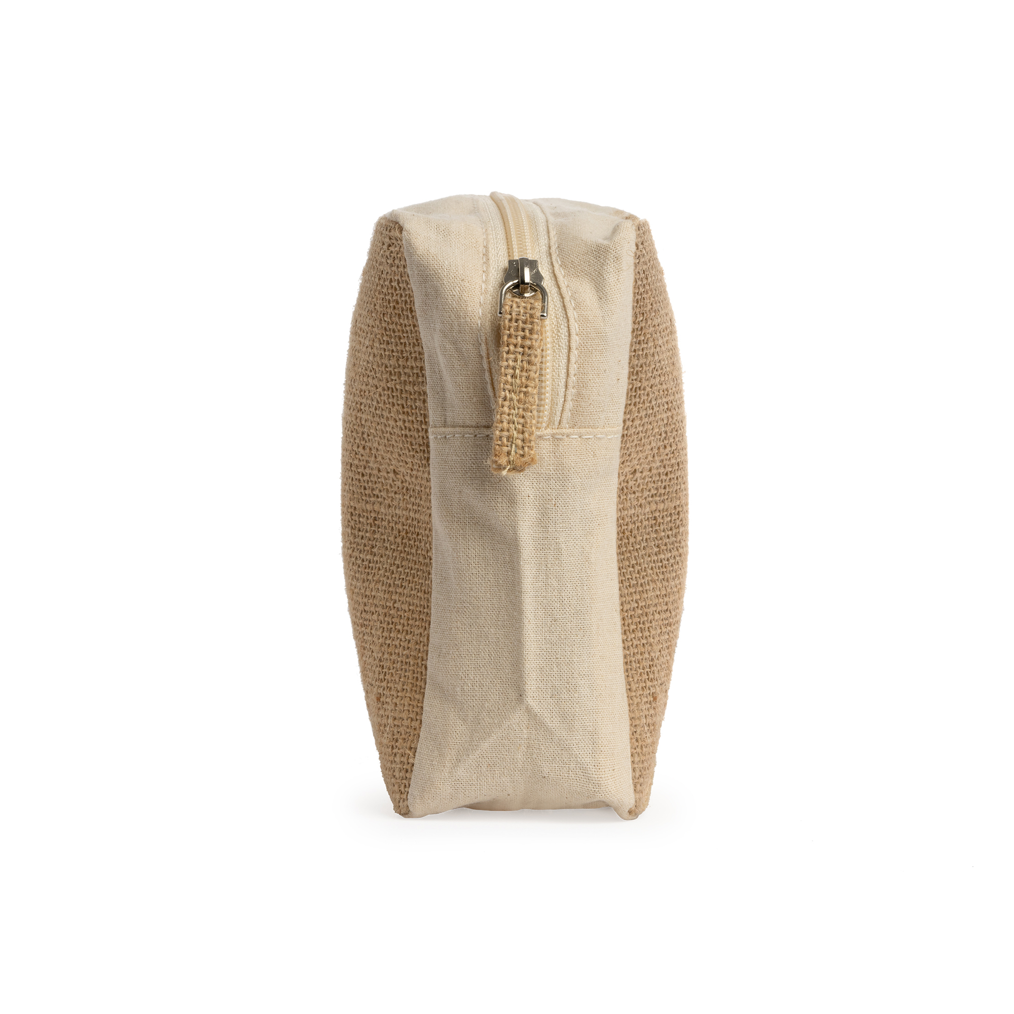 Neceser realizado en algodón y yute laminado. Práctico para guardar tus enseres. Cremallera con tirador de yute a juego.